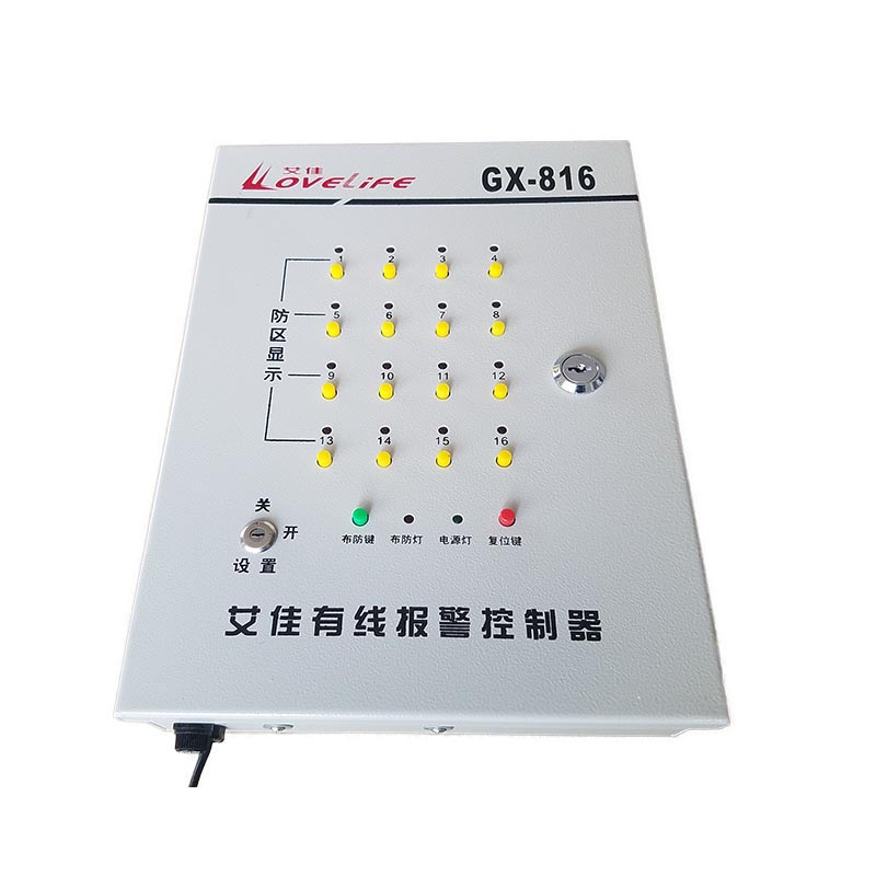 功能特点:LED16防区显示,每一个防区可单独布撤防,端口开路/短路均会报警,具有防拆报警功能,报警提供一组常开/常闭触点和DC12V输出。